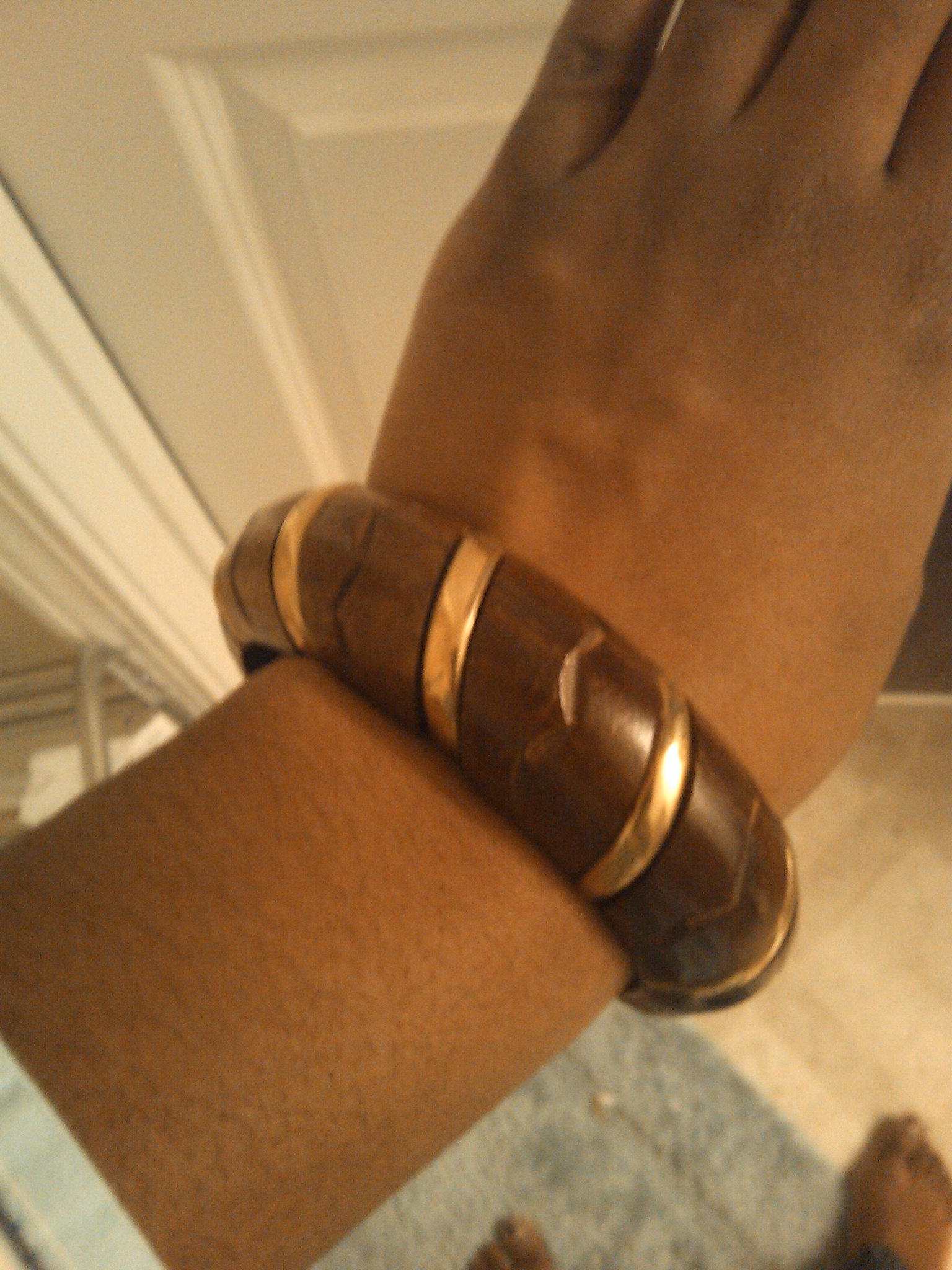 Then I got a lovely little accordion style dress that I plan to layer for the fall and let loose in the summer. Wasn’t very photogenic, but I got this great wooden bracelet with gold accents from the same vendor. I’ll have to log on later tonight to give you the link to this vendor. Sorry!!