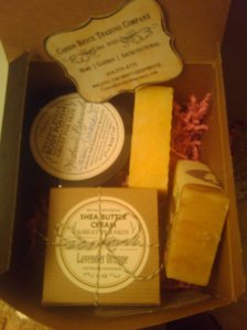 Guess what I won! A gift package from Carson Bryce Trading Company, another vendor that I wanted to visit but was worried I wouldn’t have any self control. I LOVE my sugar scrub and soap. They smell soooo wonderful.
