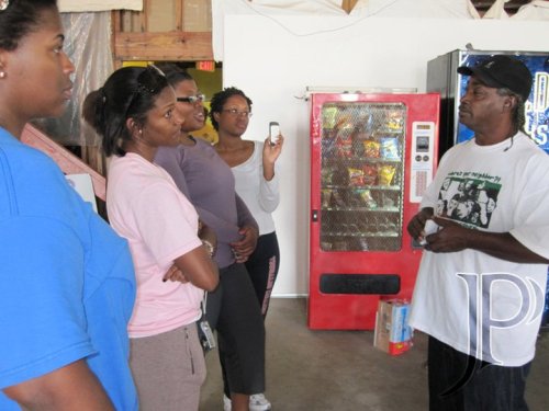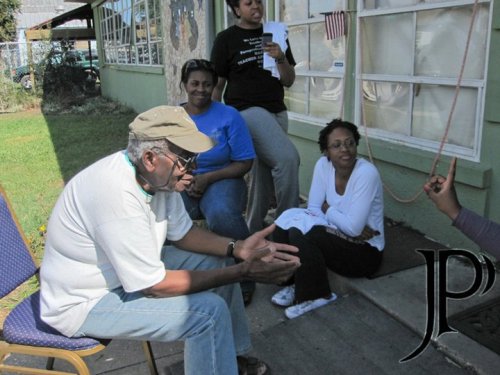 Sunday was a totally different experience, however. We went to the Lower 9th Ward, which is one of the most affected parts of the city because it’s near the levees. When we arrived at the Lower 9th Ward Village (which I plan to feature this Friday), we were all wary, ready to leave the project, straight throw the deuces, as soon as we were done with our assignment. Turns out we stayed 2 hours longer than the project was supposed to be. The morning started with an inspirational introduction from the Village CEO Mac McClendon, who started the community center to help his neighborhood after losing all his material things, including a house he had spent months renovating with his own hands. He explained to us what he went through during the storm and its aftermath, looking for his family, dealing with the smell of death when he returned, finding out that silence is a deafening sound. He said that hearing a car was a treat because there were literally no sounds—no birds chirping, no dogs barking, no crickets chirping, nothing. Out of hopelessness, he found his purpose in life and now, he’s running this center, still rebuilding his own life, but giving to his neighbors. Because there’s a law saying that if the grass is over 18 inches, a lot can be seized, we spent our morning cutting grass and weeds. Although the project wasn’t as “glamorous” as creating a garden, we felt like we had become a part of this community. After we were done, we spent two hours talking to Mr. McClendon about his life and experiences, with his younger brother who is the Program Director at the center, and with a couple of elderly residents who just wanted to pick our brains and get us thinking. We didn’t want to go, but we had to so that we could get home.  Here’s a link to a clip of the convo we had with Mr. McClendon.